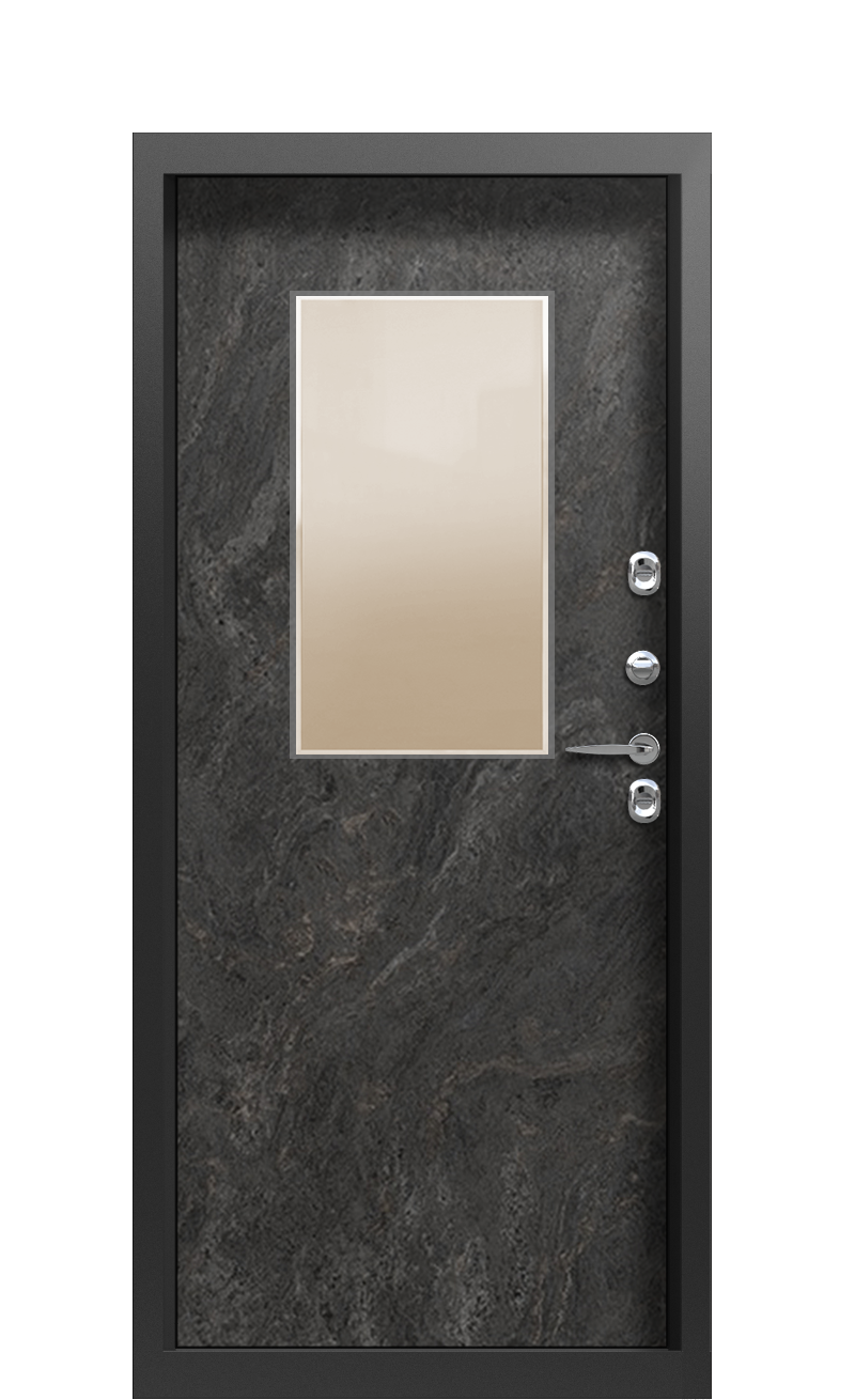 Дверь TermoPlus Vesuvio Terma Premium+ Темный мрамор 2603 с эффектным запоминающимся дизайном станет украшением вашего дома или коттеджа. Эта модель поддерживает комфортный микроклимат в помещении круглый год благодаря терморазрыву – прослойке, разделяющей дверь на две части. Этот элемент уравнивает резкий перепад между внешней и внутренней температурой, исключая мостики холода.Полотно и короб заполнены многослойным утеплителем. Он не только удерживает тепло, но и блокирует уличный шум.Отделка двери комбинированная. Наружная сторона металлическая, окрашенная полимерная краской в цвет Vesuvio. Изнутри обшивка выполнена сверхпрочными гладкими панелями Terma Premium+, обладающими твердостью камня. Поверхность имеет рисунок под натуральный камень и цвет Темный мрамор. В верхней части установлено небольшое прямоугольное зеркало оттенка Кофе.Фабрика Termo предлагает качественные термодвери по доступным ценам. Мы изготавливаем конструкции любых конфигураций, по индивидуальному заказу и типовым проектам.