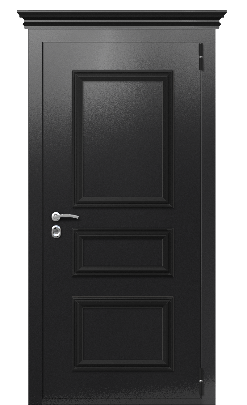 Нарядная входная дверь Termo Ral 9005 Ral 9003 186 во влагостойком исполнении предназначена для парадных. Она предотвращает потерю тепла через дверной проем благодаря наличию терморазрыва из пробкового листа и многослойной теплоизоляции. Внешняя часть этой двери окрашена в цвет Глубокий Черный, а внутренняя часть — в Сигнальный Белый. За плавное закрывание двери, дополнительную звукоизоляцию и защиту от сквозняков отвечает уплотнитель KIM ТЕС немецкого производства. Безопасность обеспечивается за счет двух сувальдных замков Kale.