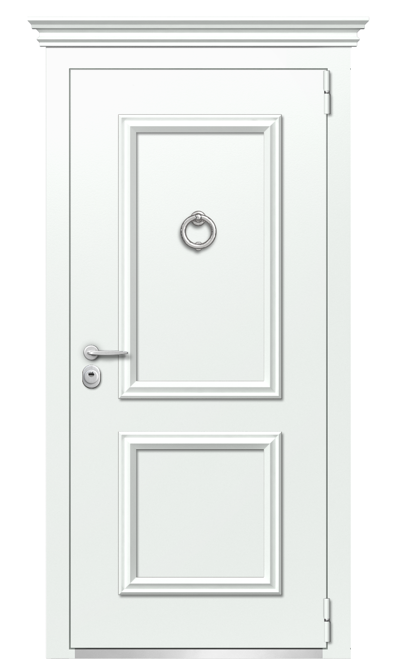 Белоснежная дверь TermoPlus Ral 9003 Венге 197 с классическим декором в виде карниза, багетов и молотка получила комбинированный дизайн, имея с обратной стороны контрастную стилизацию под натуральное дерево дорогих пород с фрезеровкой, бронзовым зеркалом и порожком из нержавейки. Смотрится такой дизайн более чем достойно, подходя для установки на входе любого современного коттеджа, чем способствует и внутренний терморазрывный каркас, обладающий высокими теплосберегающими свойствами.Не подведет это изделие и в плане сохранности покрытия и его оттенков Ral 9003 Венге 197. Снаружи для этого была применена трехслойная антикоррозийная обработка, изнутри – обшивка корабельной фанерой, которая выдерживает солнце и осадки, сохраняя свою декоративность во многом благодаря масляному пигменту.Также дверь TermoPlus Ral 9003 Венге 197 получила по умолчанию замок Kale. Это изготовленный в Турции механизм отличается высокой надежностью, предотвращая такие негативные сценарии, как взлом и проникновение злоумышленников, благодаря чему хозяева будут чувствовать себя в полной безопасности.