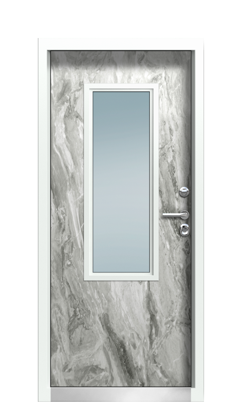 В свою очередь двухсторонний дизайн входной группы Ral 9005 Белый Мрамор 193 позволяет решить проблемы несоответствия в оформлении самого дома, попутно радуя своей практичностью и долговечностью. Такого результата удалось достичь за счет особенностей отделки – трехслойного антикоррозийного покрытия фасада и обшивкой МДФ-плитами с износостойким HPL-пластиком внутри, в точности передающим фактуру натурального камня.